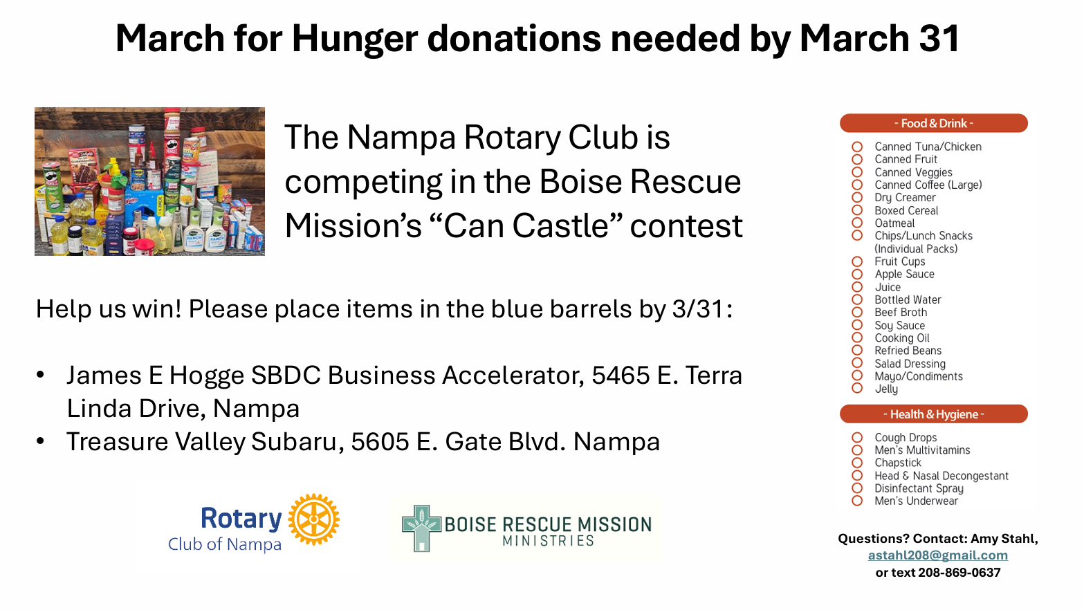 Rotary Club of Nampa leaders were proud to present a donation of $10,000 to Hope House of Marsing.